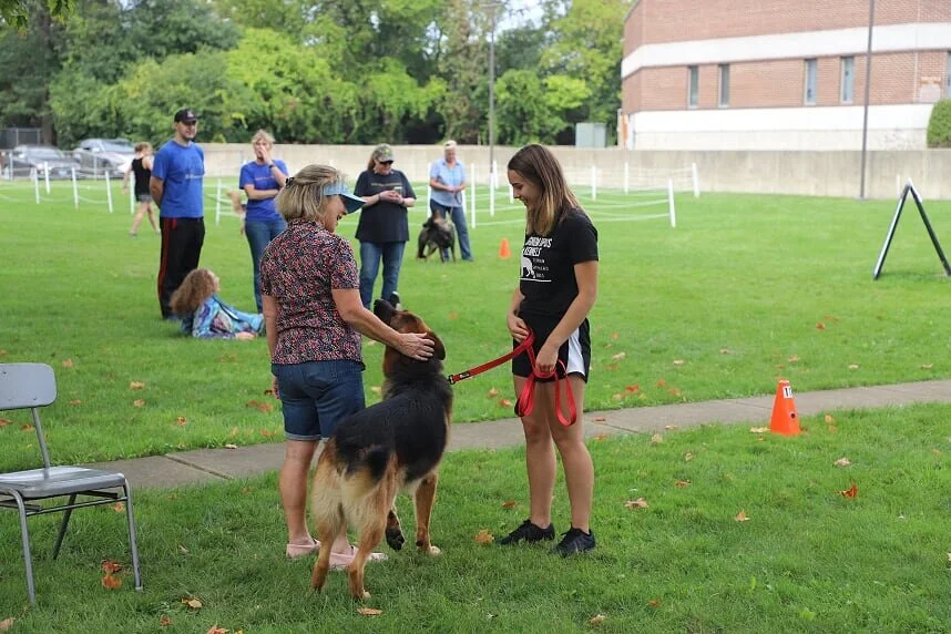Kaiser saying hello to a friendly stranger during his GSDCA Temperament Test