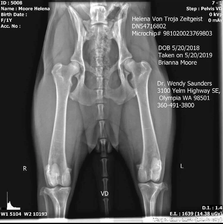 Sometimes, less than ethical breeders will argue that this type of testing is not important. They argue that OFA is too subjective, or cite examples of two dogs that both score “good” OFA hips producing a pup that scores “mildly dysplastic” hips. These are legitimate concerns; SV and PennHip have different, more objective ways of evaluating hips and elbows and that is why I personally prefer them. However, despite the fact that this type of selective breeding does not absolutely guarantee the offspring will have non-dysplastic hips and elbows, selectively breeding passing dogs only has been proven to reduce the prevalence of dysplasia over a longer period of time.