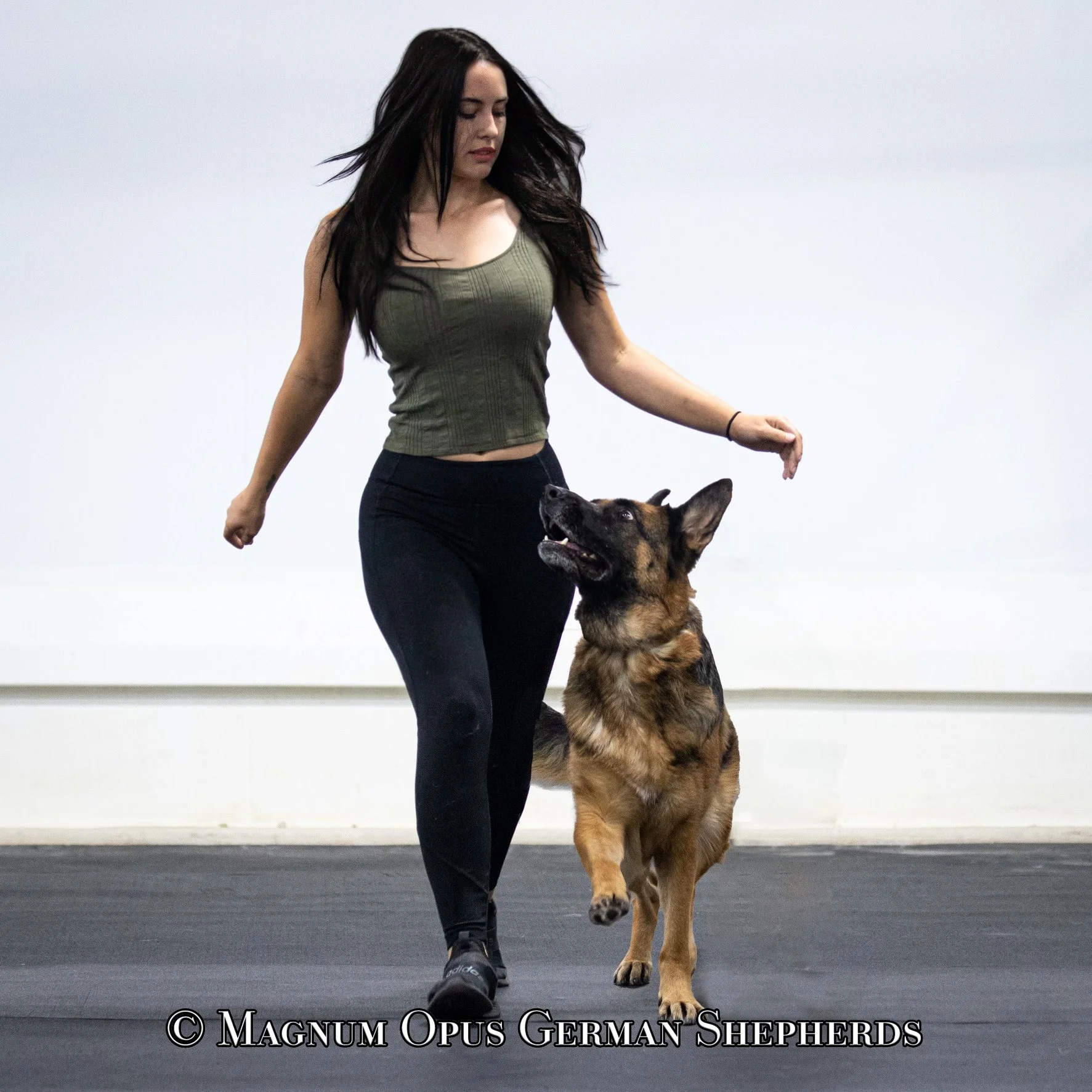 Welcome to our website, thank you for visiting! “Magnum Opus” is Latin for “Greatest Achievement”. Our goal is to produce quality German Shepherd dogs that are excellent in health, temperament, working ability, and structure. All our dogs are fully health tested, temperament tested, show rated/titled and performance/working titled before breeding. We are a proud AKC Breeder of Merit!